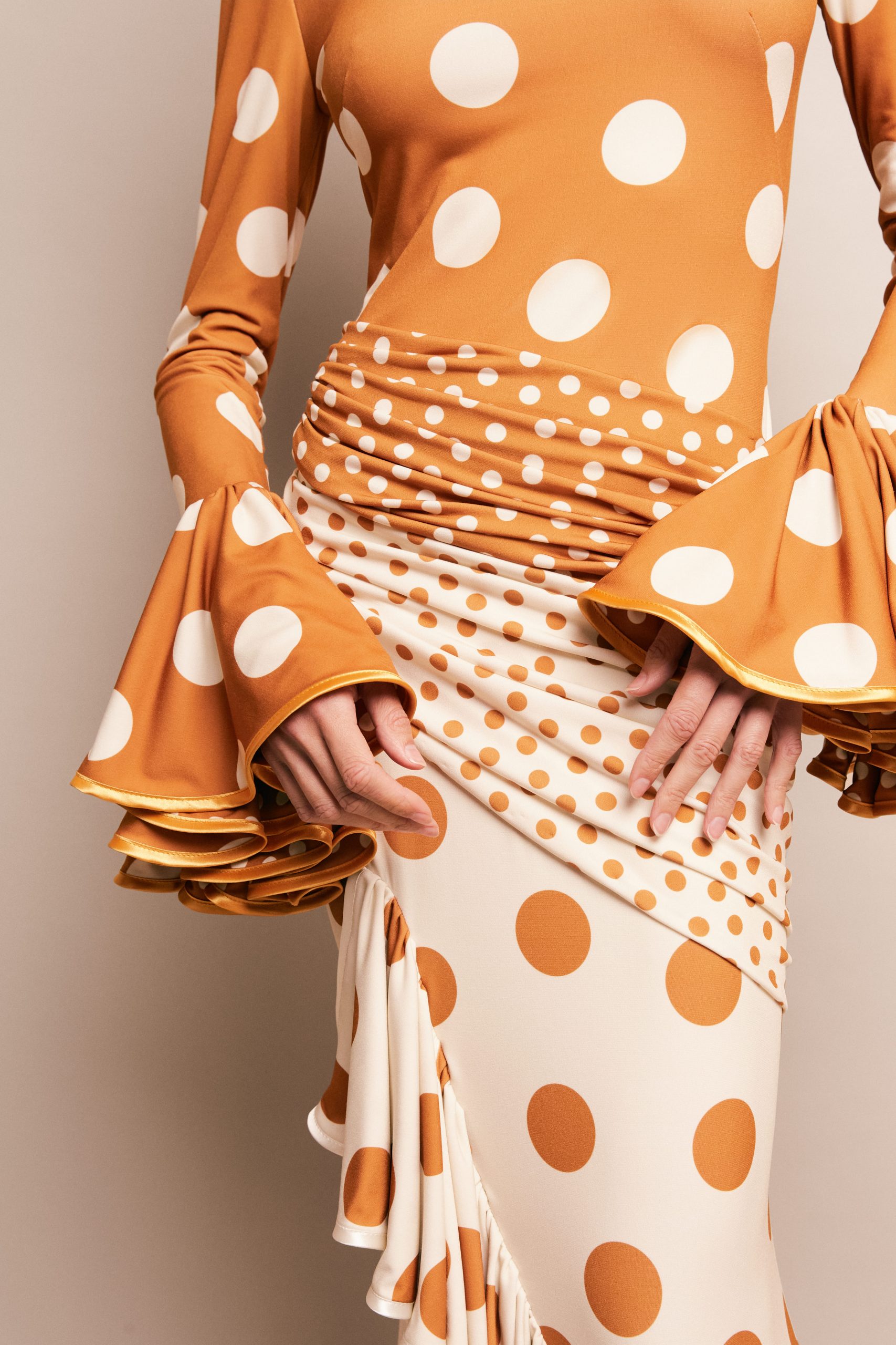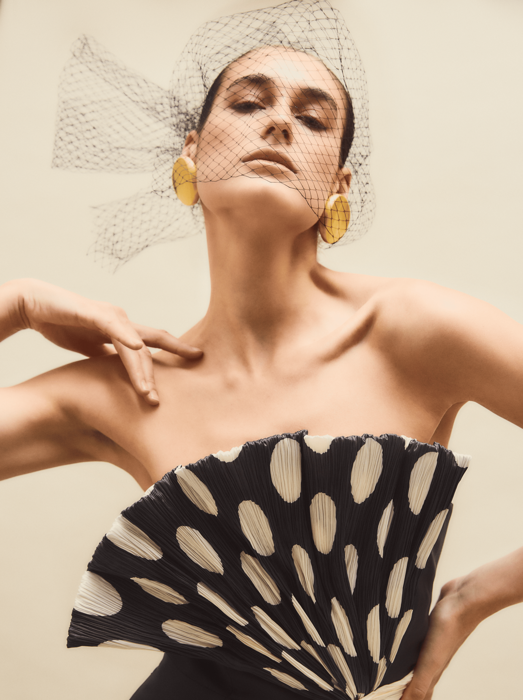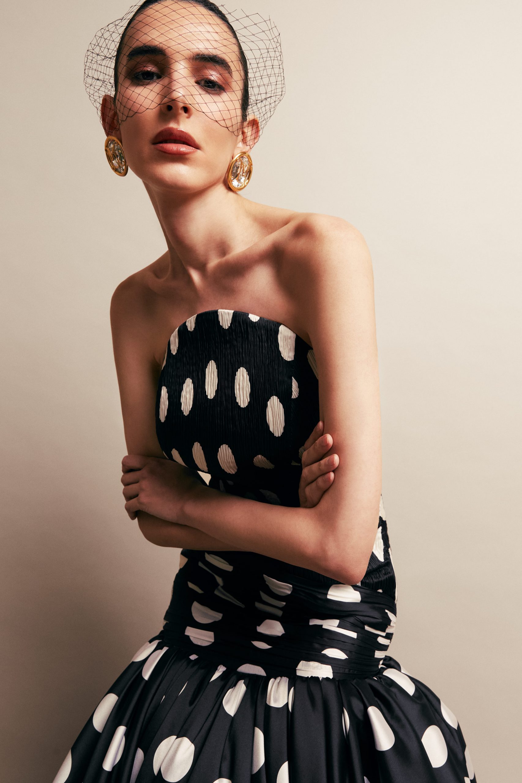 Figuras entalladas, marcadas, escotes en V strapless y asimétricos; volúmenes en hombreras y detalles en bustiers plisados. Tejidos de algodón de seda, tafetán liso y plisado o moiré, sin olvidar tampoco el tan en tendencia Polka Dots.