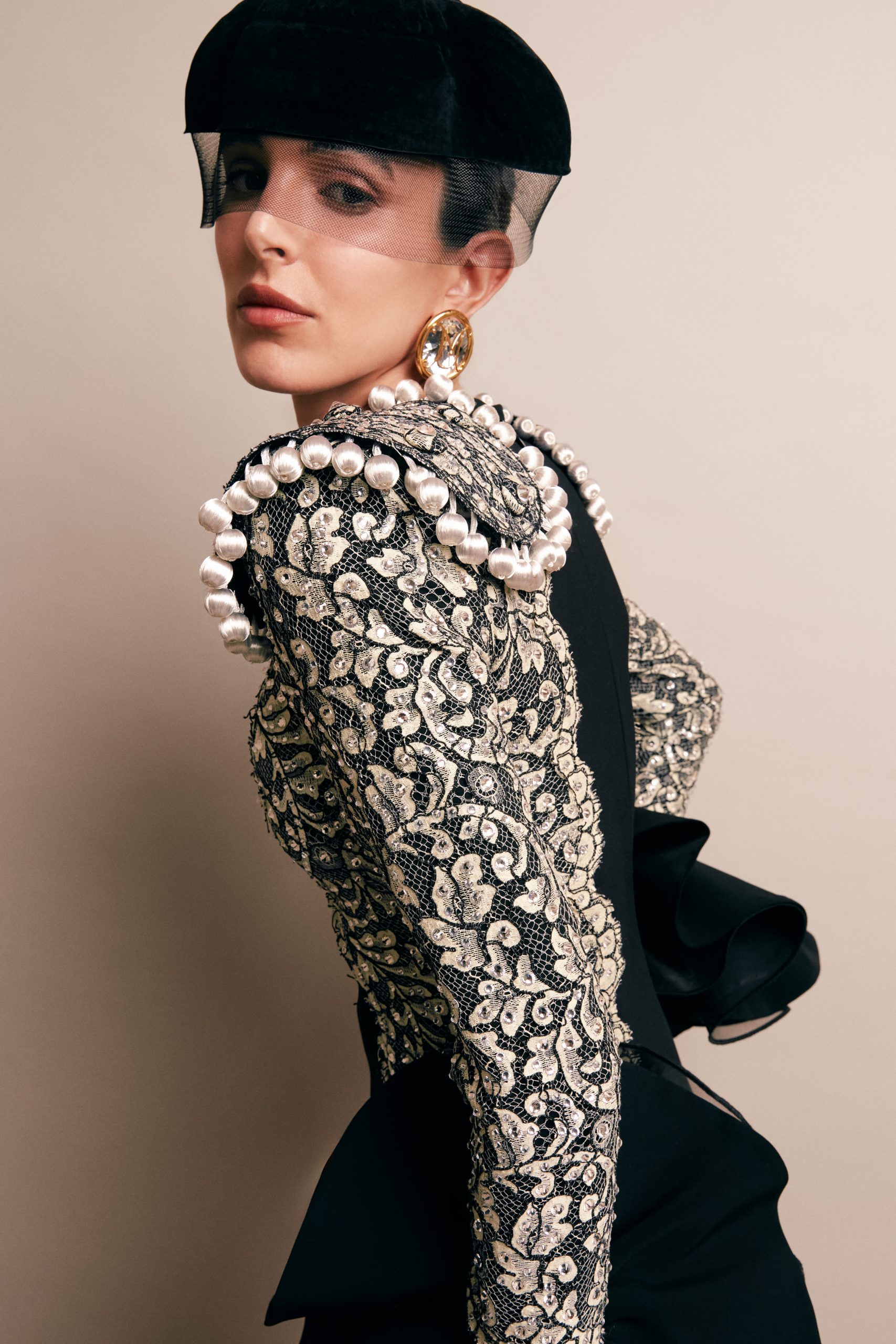 La dualidad inspira cada diseño: la sobriedad elegante de Manolete y la audacia transgresora de Lupe se traducen en siluetas que juegan con la tradición flamenca y reinventan la mujer contemporánea. La estética del torero se filtra en las piezas sastre características de la indumentaria del maestro al que podría considerarse icono de moda, mientras que la feminidad de Lupe florece en volantes elaborados y alegres estampados que irradian feminidad. El color rosa alusión a esa rosa que Lupe regala a Manolete, el rojo representación de la pasión y el amor; y el negro el luto por su muerte. Los complementos tendrán un gran protagonismo; encontramos sombreros, casquetes o monteras reinterpretadas. La joyería cordobesa presente de la mano de Álvaro Larrosa, realizando los pendientes de la colección en oro y swarovsky.