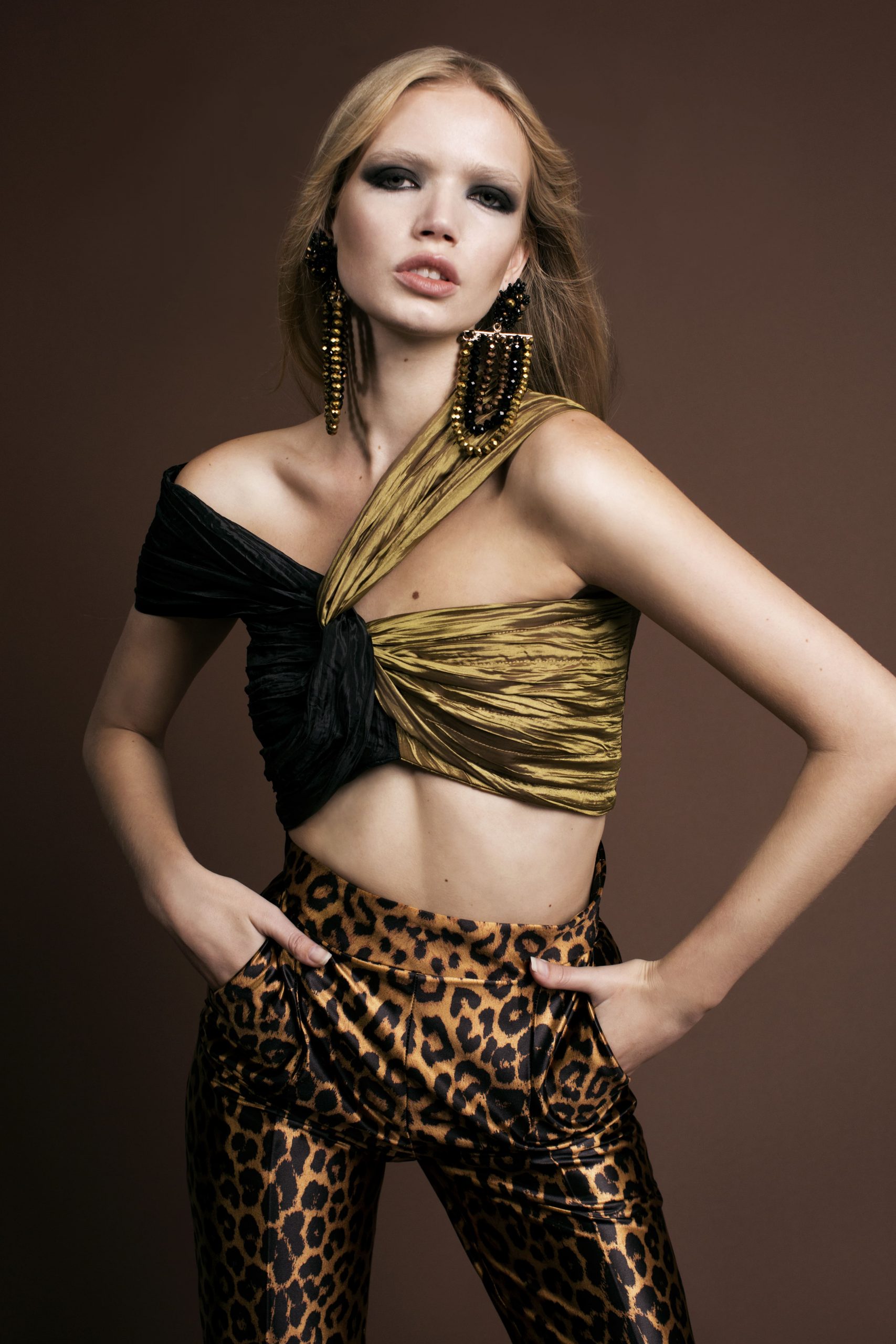 Las joyas jugarán un papel fundamental en cada look, pendientes dorados en tamaños en tamaño XXL que combinan con llamativos brazaletes a juego. El calzado también diseñado expresamente para la colección obtendrá gran protagonismo, stilletos en vinilo y tafetán forrado con una estilizada punta y pulsera al tobillo aportarán ese punto exquisito que respira la colección.